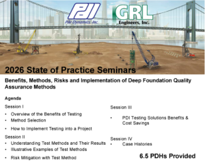 Pile Dynamics, Inc and GRL Engineers will host a one-day seminar covering the Benefits, Methods, Interpretations, Risks and Implementations of Quality Control Practices for the deep foundations industry.
